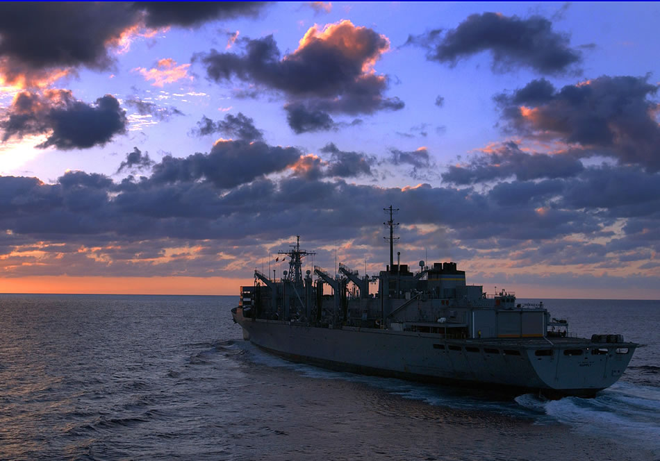 The Military Sealift Command fast combat support ship USNS Supply sails the Atlantic Ocean before a replenishment-at-sea with the Nimitz-class aircraft carrier USS Theodore Roosevelt , March 27, 2008. U.S. Navy photo by Petty Officer 3rd Class Jonathan Snyder