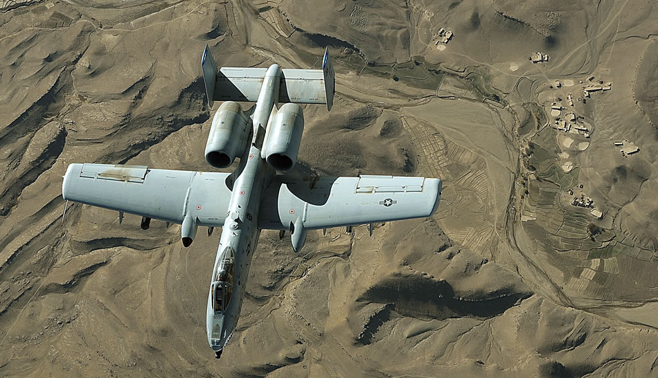 An A-10 Thunderbolt II provides top cover over Afghanistan in support of coalition ground forces. A-10s conduct shows of force to deter enemy activities and provide armed aerial overwatch. (U.S. Air Force photo/Staff Sgt. Aaron Allmon)