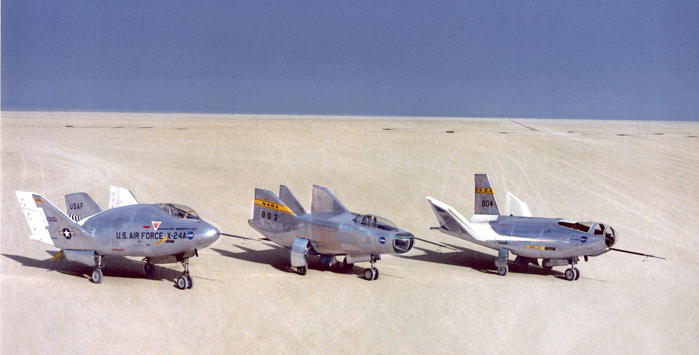 Lifting Bodies: (from left) X-24A, M2-F3 and HL-10.