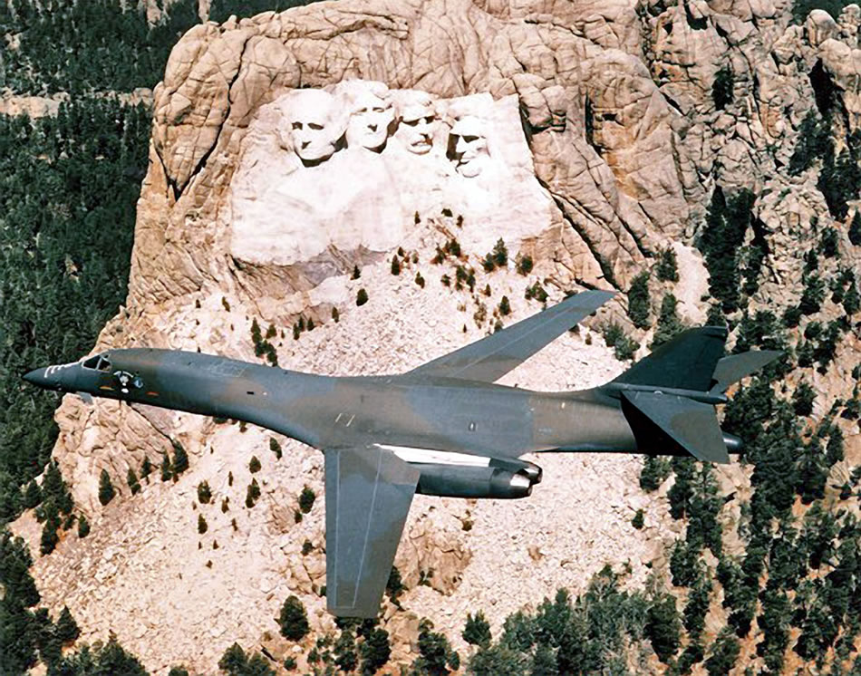 A B-1B Lancer flies past the Mount Rushmore National Memorial near Keystone, S.D. (Air Force Photo)