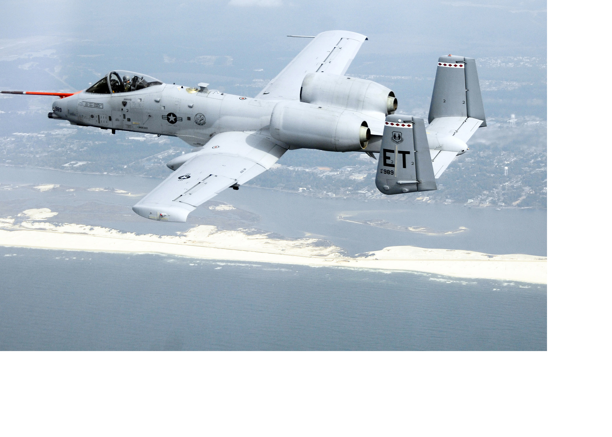 An A-10C Thunderbolt II from Eglin Air Force Base, Fla., flies along the coast of Florida March 25, 2010, during the first flight of an aircraft powered solely by a biomass-derived jet fuel blend. The A-10 was fueled with a 50/50 blend of Hydrotreated Renewable Jet and JP-8. (U.S. Air Force photo/Senior Master Sgt. Joy Josephson)