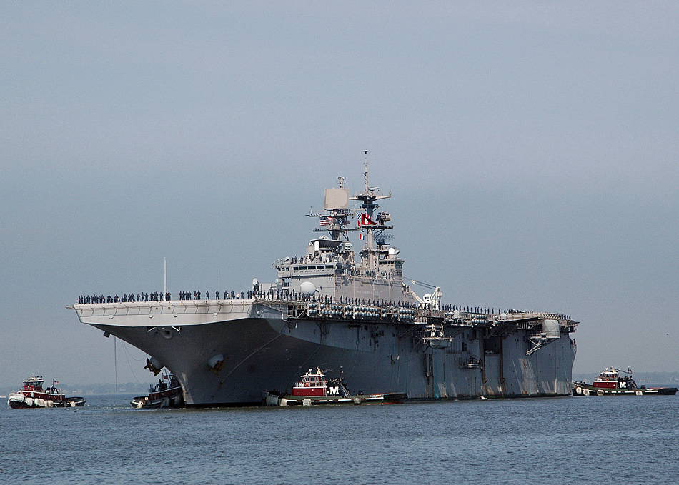 NORFOLK (April 3, 2010) The multipurpose amphibious assault ship USS Bataan (LHD 5) returns to Naval Station Norfolk. Bataan returned after conducting humanitarian and disaster relief operations as part of Operation Unified Response in the aftermath of a 7.0 magnitude earthquake that struck Haiti Jan. 12. (U.S. Navy photo by Mass Communication Specialist 2nd Class Rafael Martie)