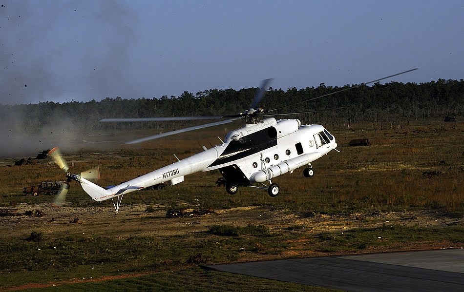 A Russian MI-17 used by the 6th Special Operations Squadron, Air Force Special Operation Command, Hurlburt Field, Fla., lands on the Eglin Air Force Range. The 6th SOS demonstrated some of its capabilities for participants of the Joint Civilian Orientation Course. JCOC is a Secretary of Defense sponsored program, which gives civilian community leaders the opportunity to learn about the military and national defense. Photo by Master Sgt. Russell Cooley