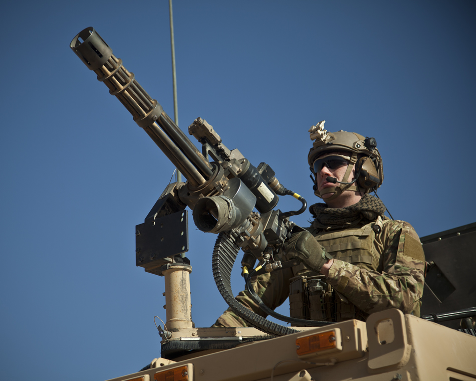 A coalition force member waits to fire the Mark 44 minigun during live fire training on a base in Farah province, Afghanistan, Dec. 29, 2012. The coalition forces conducting the training are deployed to train and mentor Afghan National Security Forces in their area of operations. Afghan National Security Forces have been taking the lead in security operations, with coalition forces as mentors, to bring security and stability to the people of the Islamic Republic of Afghanistan. (U.S. Marine Corps photo by Sgt. Pete Thibodeau)