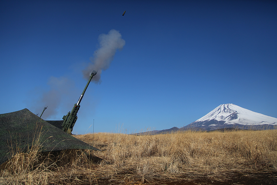 Marines fire high-angle shots from M777 A2 155 mm howitzers Jan. 31 in the East Fuji Maneuver Area during Exercise Fire Dragon 13-2. During the live-fire portion of the exercise, Marines practiced firing at various angles to increase their ability to provide fire support to maneuver elements. The Marines are with 3rd Battalion, 12th Marine Regiment, 3rd Marine Division, III Marine Expeditionary Force.Photo by Lance Cpl. Matthew Manning