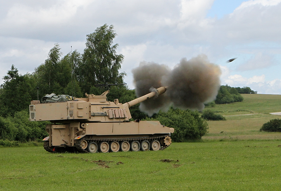 Artillerymen with Battery A, 1st Battalion, 82nd Field Artillery Regiment fire their Paladins during a live fire training exercise at Grafenwoehr Training Area, Germany, June 20. Photo by Capt. John Farmer