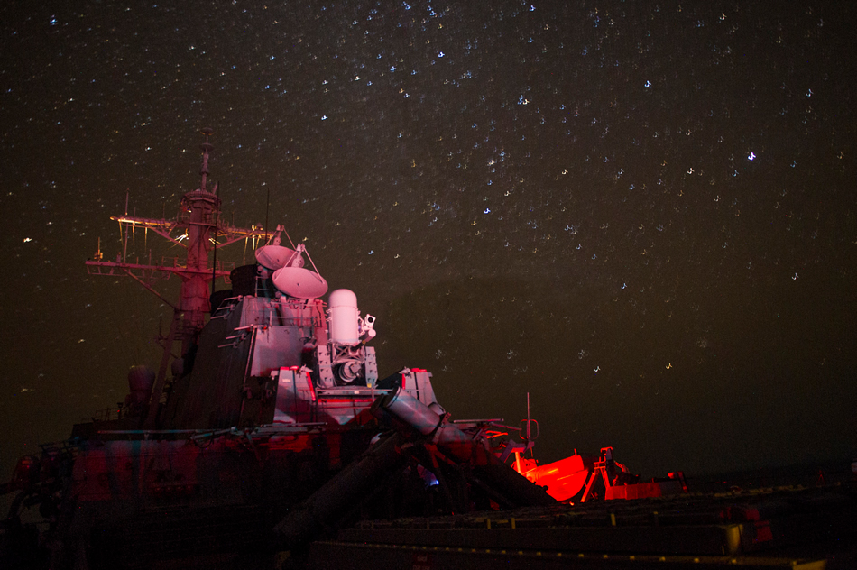 INDIAN OCEAN (Feb. 6, 2016) Guided-missile destroyer USS Gonzalez (DDG 66) transits the Indian Ocean. Gonzalez is deployed as part of the Harry S. Truman Carrier Strike Group, supporting maritime security operations and theater security cooperation efforts in the U.S. 5th Fleet area of operations. (U.S. Navy photo by Mass Communication Specialist 3rd Class Pasquale Sena)