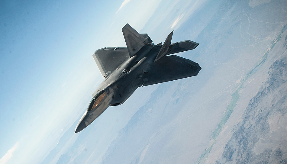 An F-22A Raptor assigned to the 27th Fighter Squadron, Joint Base Langley-Eustis, Virginia, holds pattern and awaits a wingman conducting an aerial refuel during a Red Flag 16-3 training sortie July 22, 2016 at Nellis AFB, Nev. Various units from around the Air Force, joint branches and coalition partners converge on Nellis three to four times a year to take part in the exercise, which puts to test the participant force’s air, space, cyber and combat search and rescue capabilities. (U.S. Air Force photo by Senior Airman Joshua Kleinholz)
