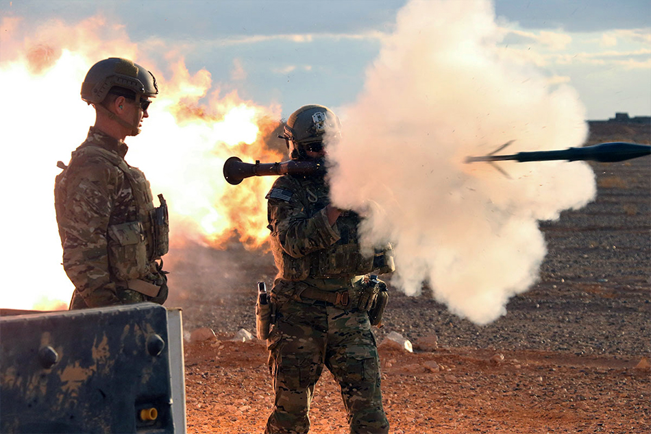 Special Operations Joint Task Force - Operation Inherent Resolve commander Maj. Gen. James Jarrard provides assistant gunner support to a member of 5th Special Forces Group (A) 5310 Operation Detachment Bravo during counter ISIS operations in southern Syria, Nov. 22. (U.S. Army photo by Staff Sgt. Jacob Connor)