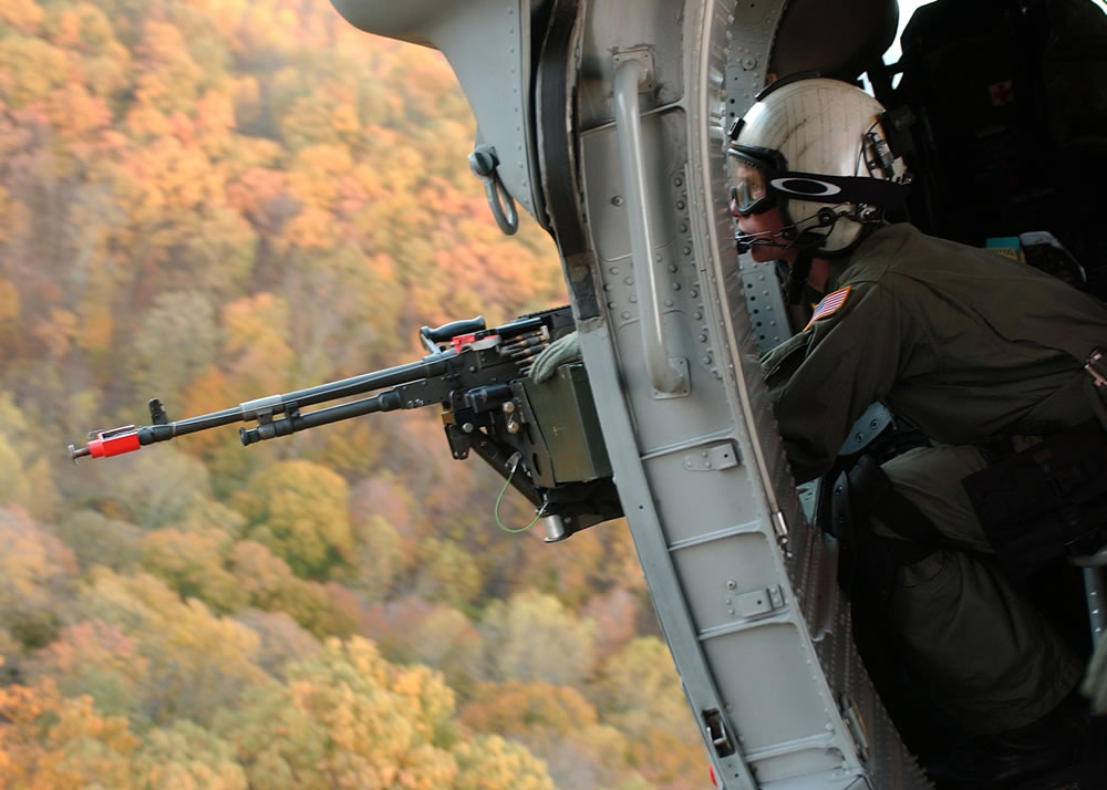 10/20/04 - Aviation Machinist Mate 2nd Class Andrew Ward, assigned to the "Chargers" of Helicopter Combat Support Squadron Six (HC 6) provides suppression fire during an urban assault training exercise near Fort Knox, Ky.