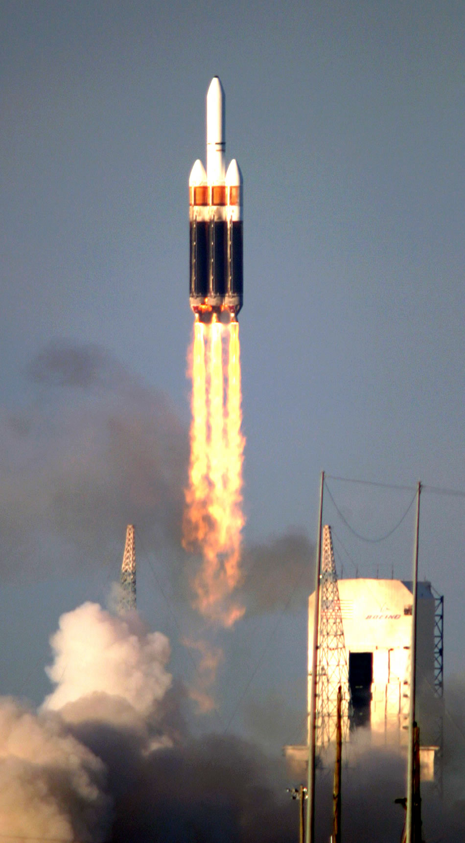 CAPE CANAVERAL AIR FORCE STATION, Fla. -- A Boeing Delta IV heavy launch vehicle lifted off from here on a demonstration mission for the Air Force's evolved expendable launch vehicle program. The mission is to send the satellite into a geosynchronous Earth orbit.