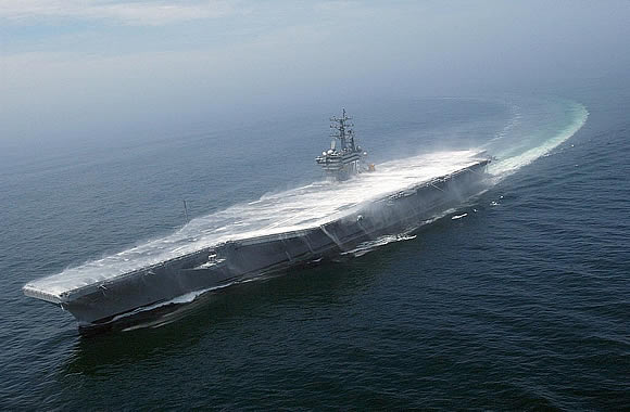 USS Ronald Reagan (CVN 76) using its NBC decontamination system. For half a century, most US warships have had an external water spraying system for flushing away nuclear fallout, or chemical or biological weapons.