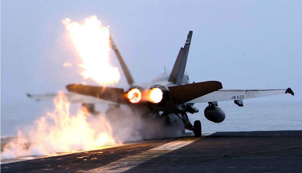 An F/A-18C Hornet, from Marine Fighter Attack Squadron 232 (VMFA-232), launches from the flight deck of USS ABRAHAM LINCOLN (CVN 72) while underway in the Pacific Ocean, Sept. 15, 2004.