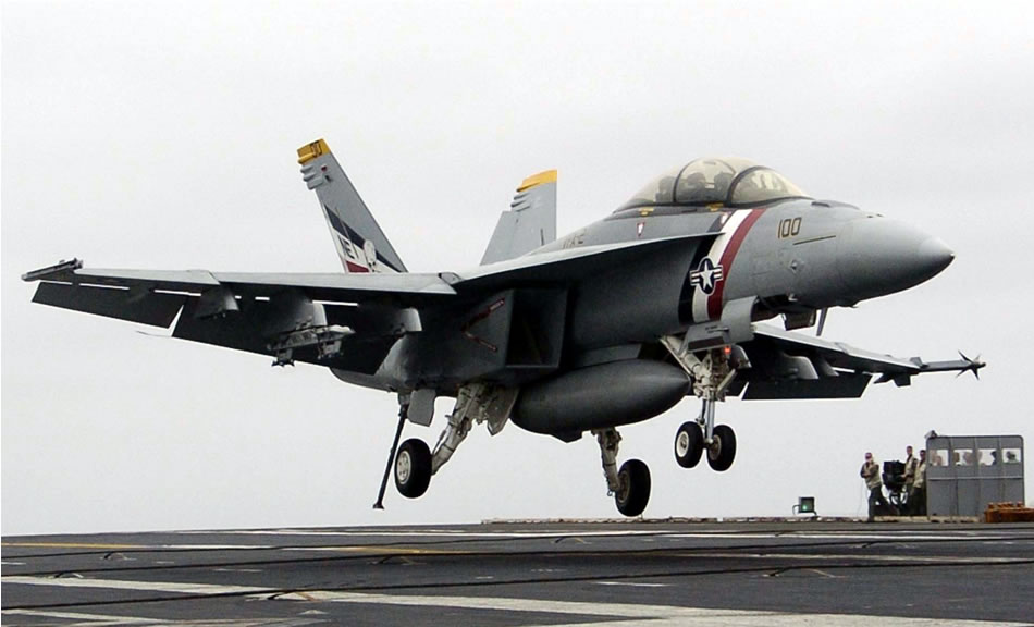 Pacific Ocean (June 13, 2005) - An F/A-18F Super Hornet, assigned to the �Bounty Hunters� of Strike Fighter Squadron Two (VFA-2), prepares to make an arrested landing on the flight deck aboard the Nimitz-class aircraft carrier USS Abraham Lincoln (CVN 72). Lincoln is currently at sea off the coast of Southern California conducting readiness training in support of the Fleet Response Plan. U.S. Navy photo by Photographer's Mate Airman Justin R. Blake