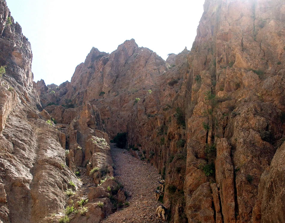 August 5, 2005Soldiers from Company B, 3rd Battalion, 116th Infantry Regiment, 29th Infantry Division, clamber up a ravine in southeastern Afghanistan, in search of insurgents and weapons caches. Photo by Staff Sgt. Joseph Collins Jr.