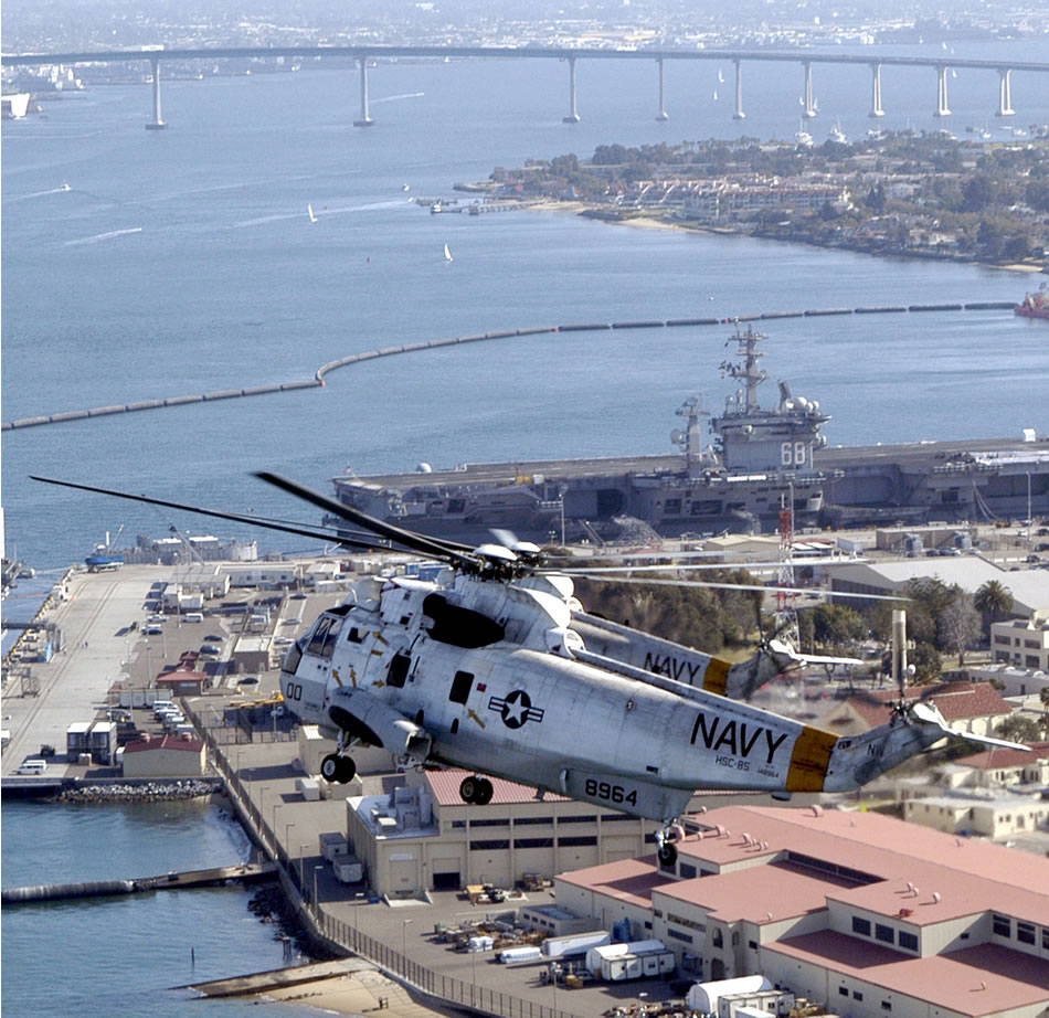 Coronado, Calif. (Jan. 19, 2007) - H-3 Sea King helicopters assigned to Helicopter Sea Combat Squadron Eight Five (HSC-85) fly over Naval Air Station North Island during a ceremonial flight honoring more than 40 years of service by the Sea King. Sea King is being replaced by the SH-60 Seahawk helicopter throughout the Navy. U.S. Navy photo by Mass Communication Specialist Seaman Dustin Kelling