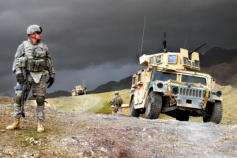 U.S. Army 1st Lt. Larry Baca monitors the weather outside as a storm approaches Forward Operation Base Lane, Afghanistan, Feb. 19, 2009. Baca is assigned to Company C, 1st Battalion, 4th Infantry Regiment. U.S. Army photo by Staff Sgt. Adam Mancini