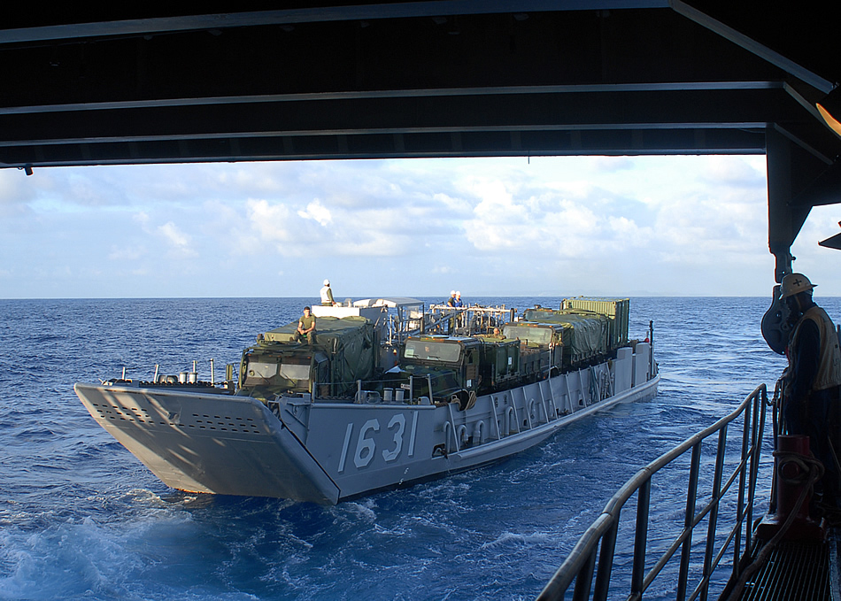 Sailors aboard the amphibious dock landing ship USS Tortuga launch Landing Craft Utility 1631, assigned to Assault Craft Unit 1, during amphibious operations. Tortuga is part of the Denver Amphibious Ready Group conducting a fall patrol in the western Pacific Ocean. Photo by Petty Officer 1st Class Geronimo Aquino