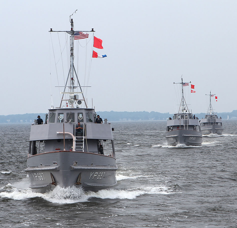 Annapolis, Md. (July 12, 2010) Approximately 100 U.S. Naval Academy Midshipmen get underway in four yard patrol (YP) crafts from Annapolis, Md., en route to Newport, R.I., as part of summer training evolutions. While in Newport, the midshipmen will learn damage control skills in damage investigation, pipe patching, shoring, structural damage repair and the importance of these skills in a shipboard damage control environment. (U.S. Navy photo by Midshipman 3rd Class Dominic Montez)