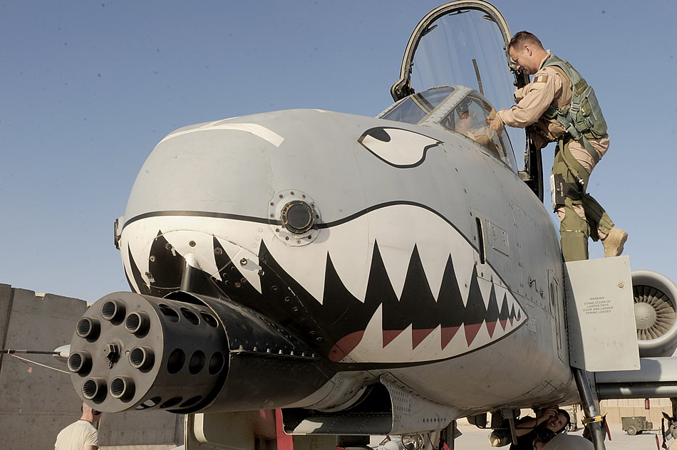 French air force Maj. Yann Malard exits an A-10C Thunderbolt II after a mission Nov. 10, 2010, at Kandahar Airfield, Afghanistan. Major Malard is an assistant duty officer with the 75th Expeditionary Fighter Squadron. He is deployed with the American unit as part of the three-year foreign exchange pilot program. (U.S. Air Force photo/Tech. Sgt. Chad Chisholm)