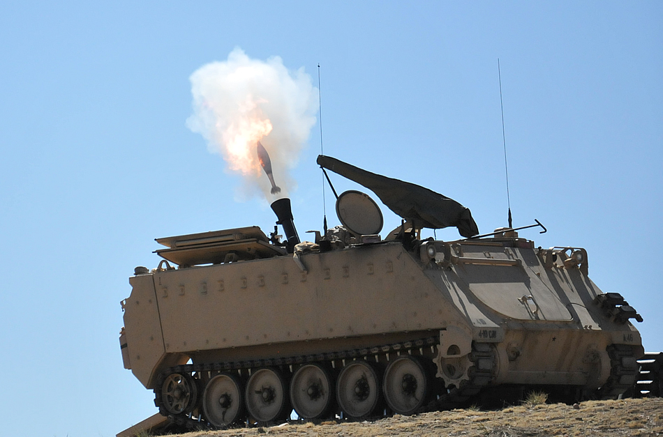 FORT CARSON, Colo. - A fireball engulfs a mortar round, March 19, 2014,during a mortar live-fire exercise. Soldiers of the 4th Squadron, 10th CavalryRegiment, 3rd Armored Brigade Combat Team, 4th Infantry Division, conductedmortar training as part of gunnery training and certifications executed by units across 3rd ABCT.(U.S. Army photo by Staff Sgt. Grady Jones)