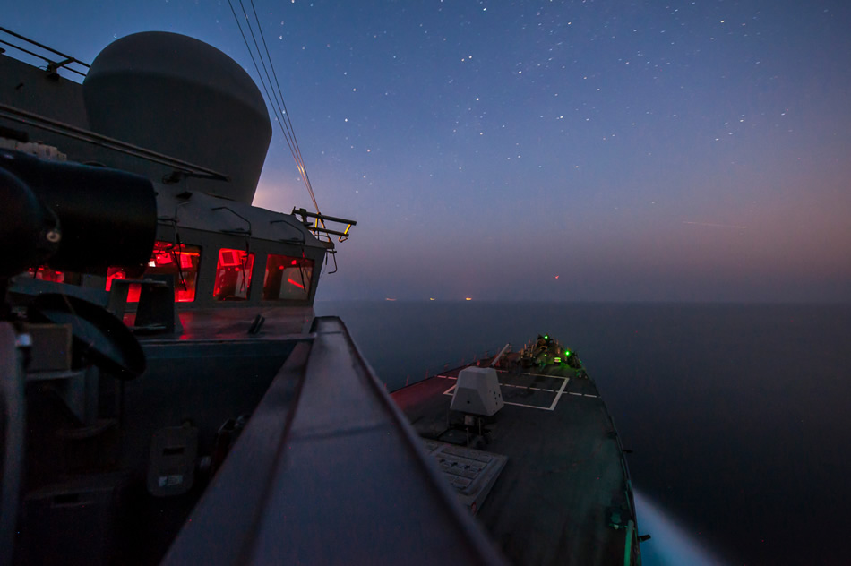 STRAIT OF HORMUZ (July 20, 2014) The guided-missile destroyer USS Truxtun (DDG 103) transits the Strait of Hormuz. Truxtun is deployed as part of the George H.W. Bush Carrier Strike Group supporting maritime security operations and theater security cooperation efforts in the U.S. 5th Fleet area of responsibility. (U.S. Navy photo by Mass Communication Specialist 3rd Class Scott Barnes)