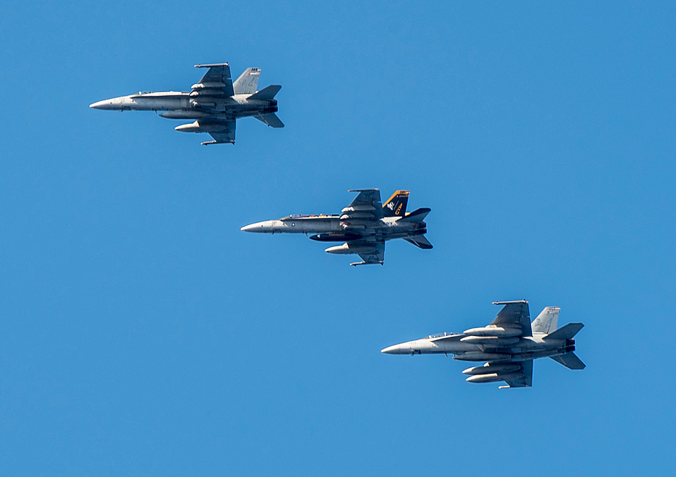 MEDITERRANEAN SEA (June 8, 2016) Aircraft assigned to Carrier Air Wing 7 fly over the flight deck of aircraft carrier USS Harry S. Truman (CVN 75) June 8, 2016. Harry S. Truman Carrier Strike Group is deployed in support of Operation Inherent Resolve, maritime security operations and theater security cooperation efforts in the U.S. 6th Fleet area of operations. (U.S. Navy photo by Mass Communication Specialist 3rd Class Bobby J Siens)