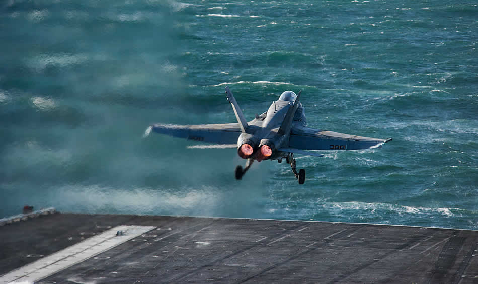 ATLANTIC OCEAN (March 14, 2017) An F/A-18E Super Hornet assigned to the "Gladiators" of Training Squadron (VFA) 106 takes off from the aircraft carrier USS Dwight D. Eisenhower (CVN 69). The ship is conducting aircraft carrier qualifications during the sustainment phase of the optimized fleet response plan. (U.S. Navy photo by Mass Communication Specialist 3rd Class Nathan T. Beard)