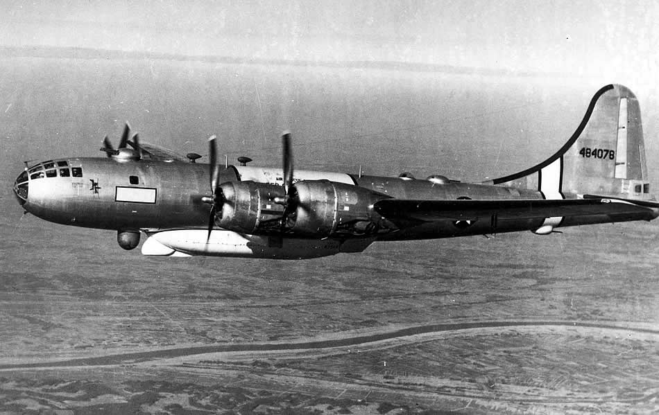 ARS SB-29 with a droppable boat. During the Korean War, SB-29s orbited along the bombers' route. (U.S. Air Force photo)