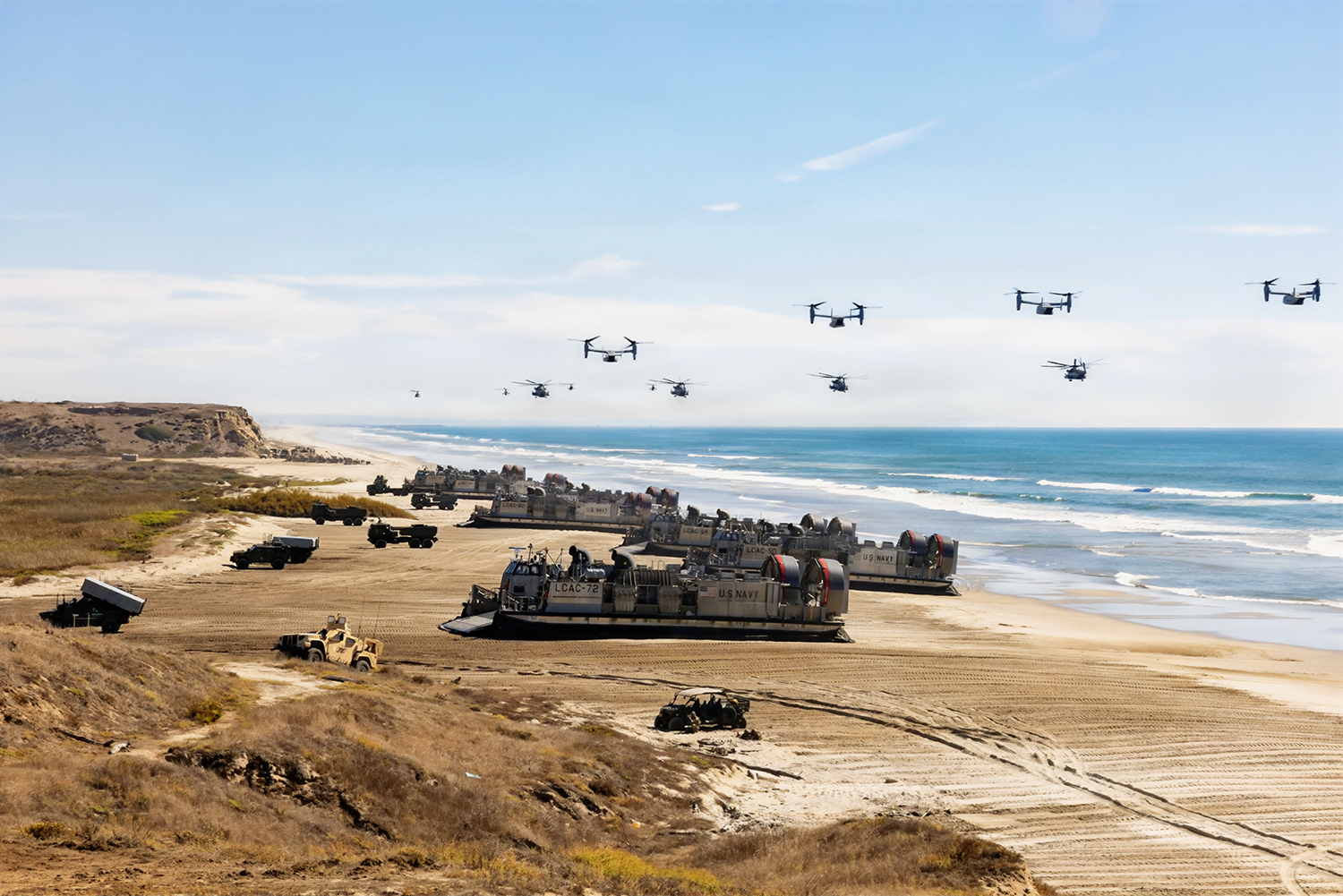 The U.S. Marine Corps and Navy participate in the Marine Corps 250th Birthday Amphibious Capabilities Demonstration at Marine Corps Base Camp Pendleton, California, Oct. 18, 2025. The 250th Amphibious Capabilities Demonstration at Camp Pendleton marks the Marine Corps’ 250th birthday and America’s Semiquincentennial. The live-fire event highlights the Navy-Marine Corps team’s ability to integrate across air, land, and sea, showcasing the Corps’ enduring role as America’s force in-readiness. (U.S. Marine Corps photo by Cpl. Joshua Bustamante)